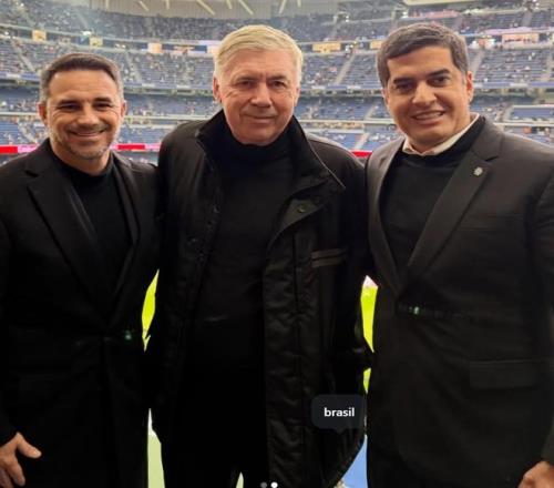 照片中,安切洛蒂站在观众席上观看比赛,神情兴奋,显然对皇马的胜利感到十分高兴。此次他与巴西国家队总监同行,也旨在考查皇马阵中的巴西国脚们的表现。