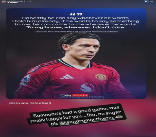 斯科尔斯的处理方式也很机智,随后他在社交媒体上幽默回应了这场“串门”邀请:“某人今天踢了场好球,真为你高兴…… 茶,不加糖。”